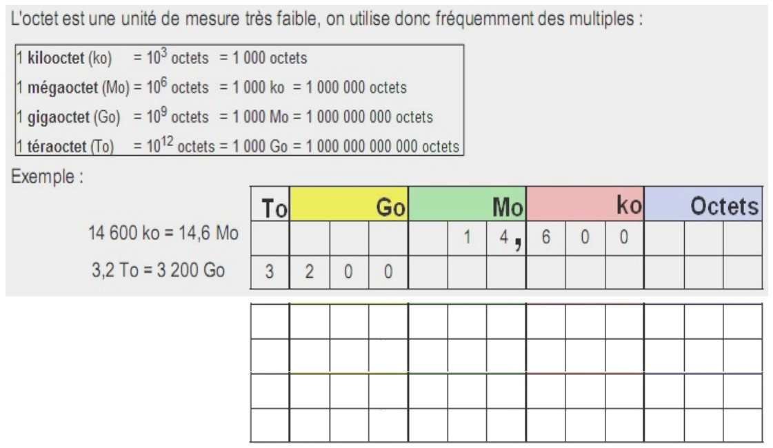 Exercices sur la taille des fichiers